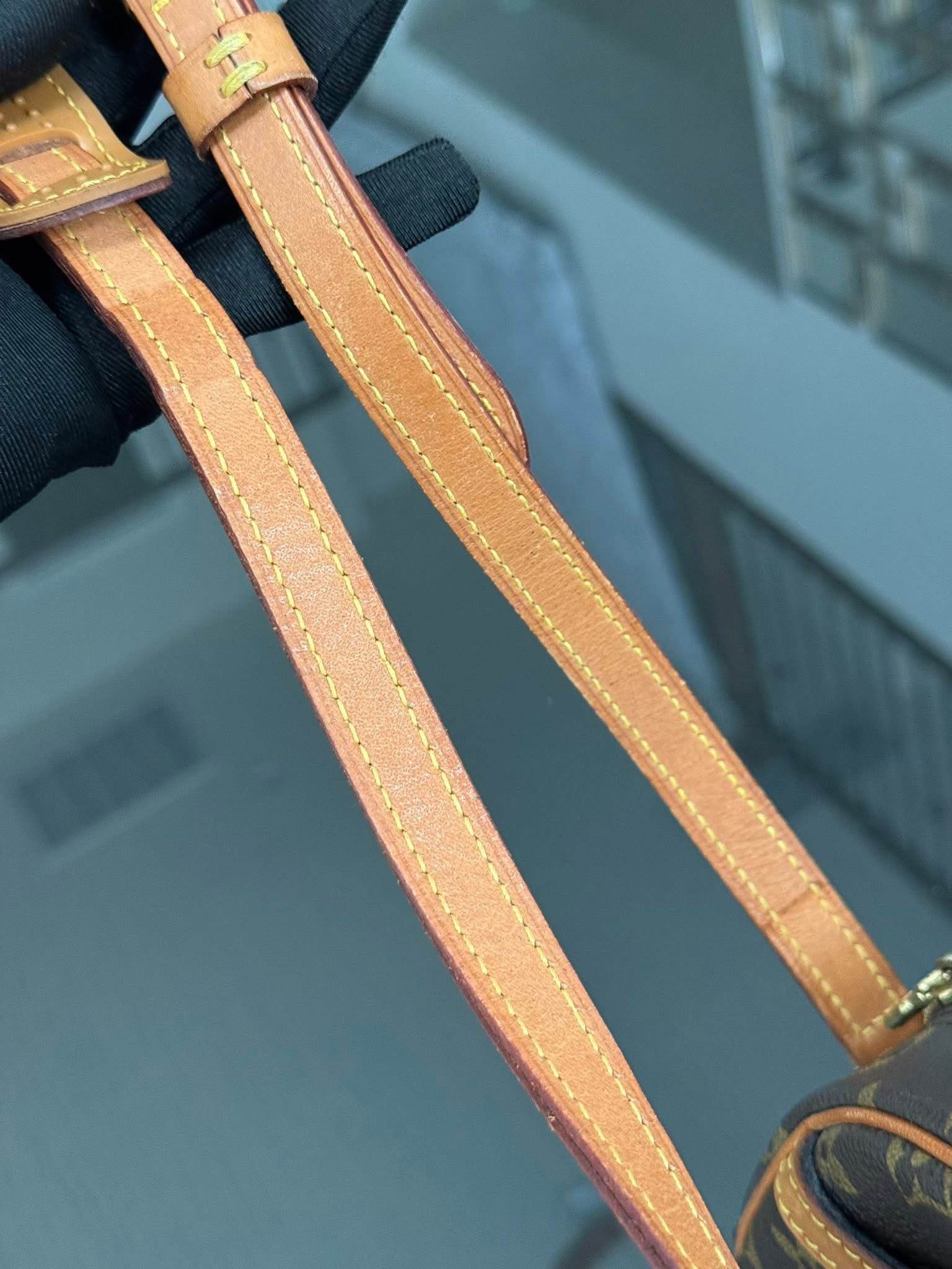 Leather: All tabs are intact and no exposed piping, Shows normal sign of used and overall in great condition.