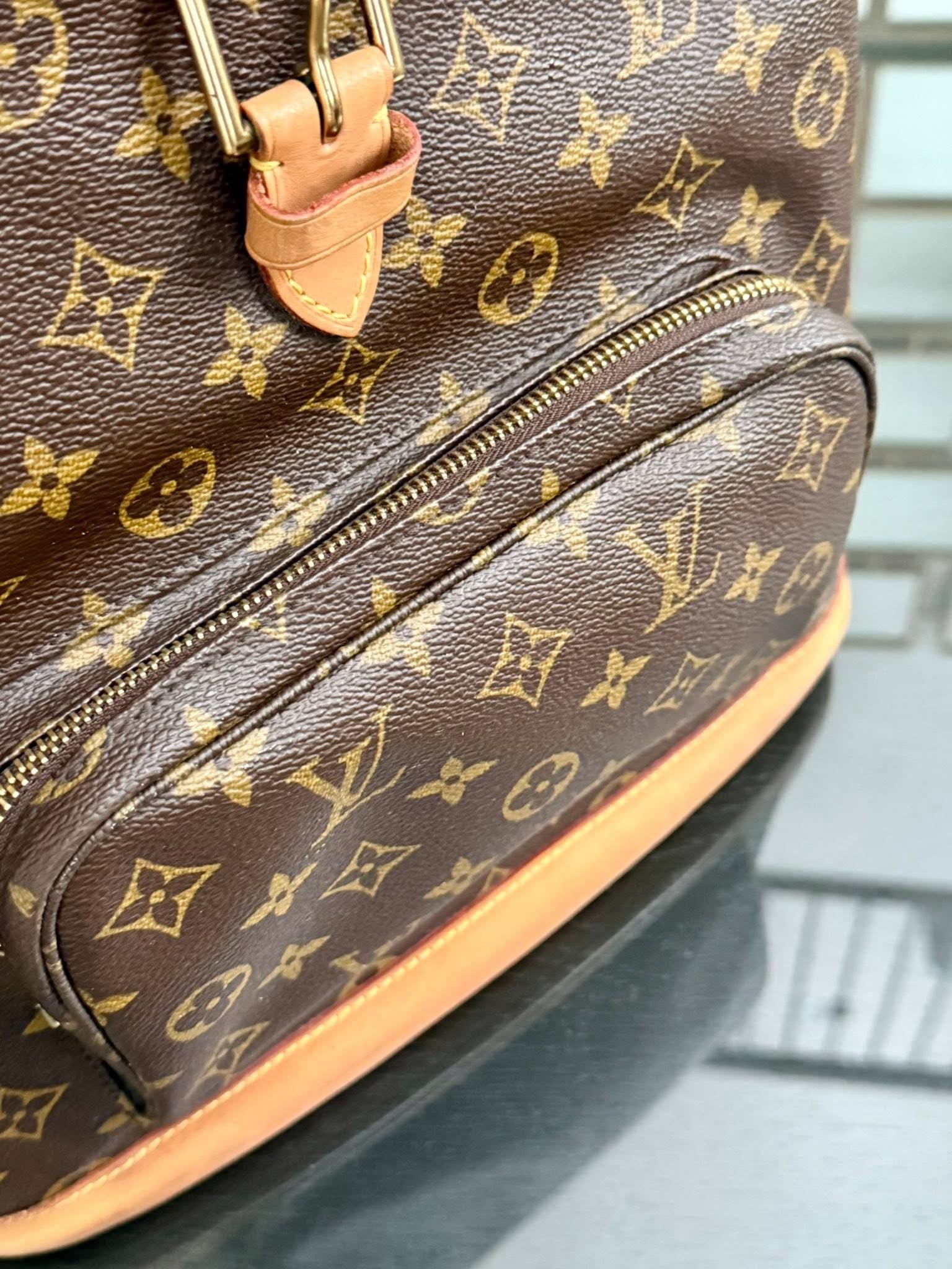Leather: All tabs are intact . Shows normal sign of used . Around trim is in great condition with No crack and No rips.. Overall itโs great and solid condition .