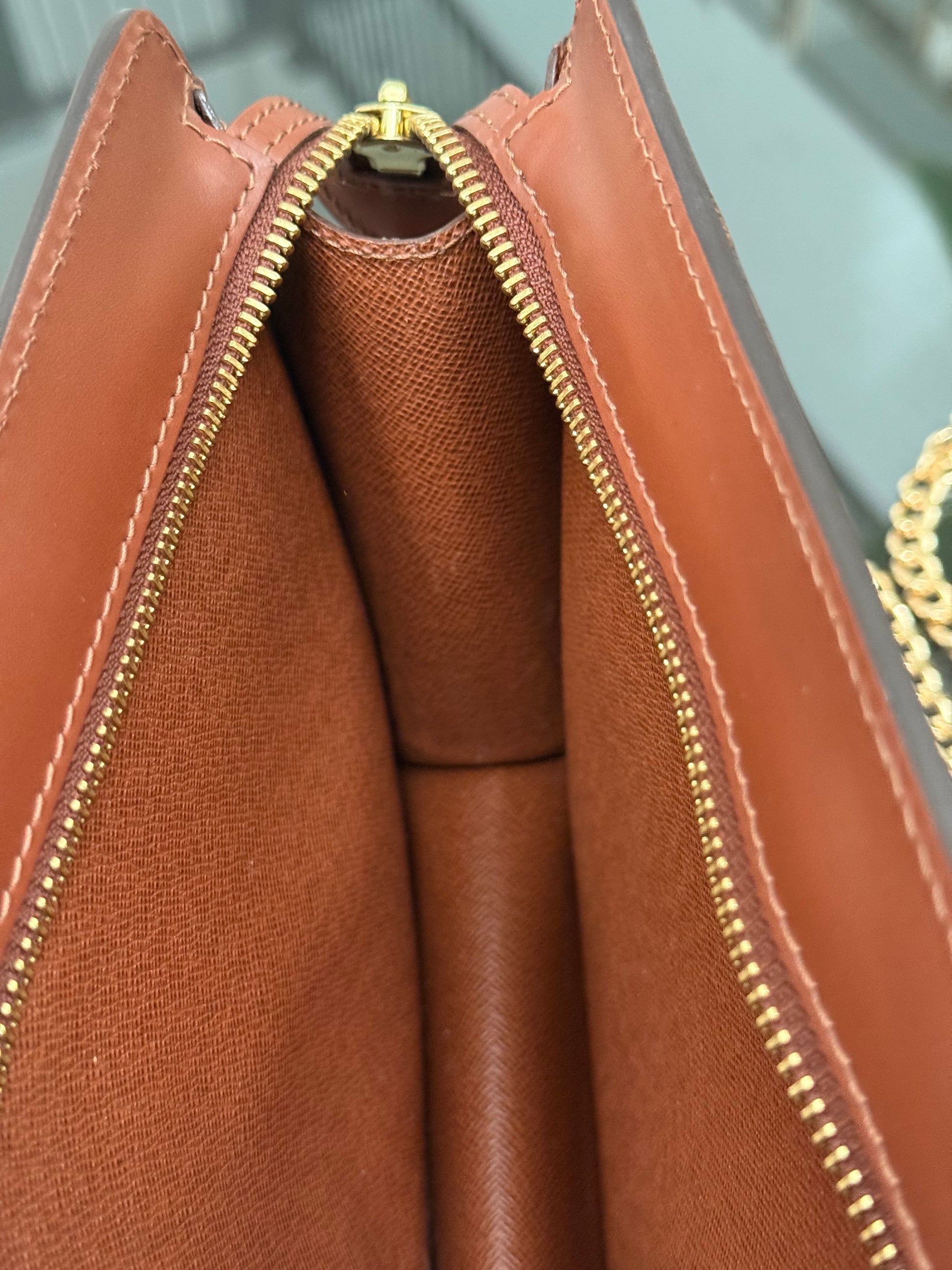 Interior: Clean and outside pocket had been cleaned from peeling and it’s now in great useable condition .